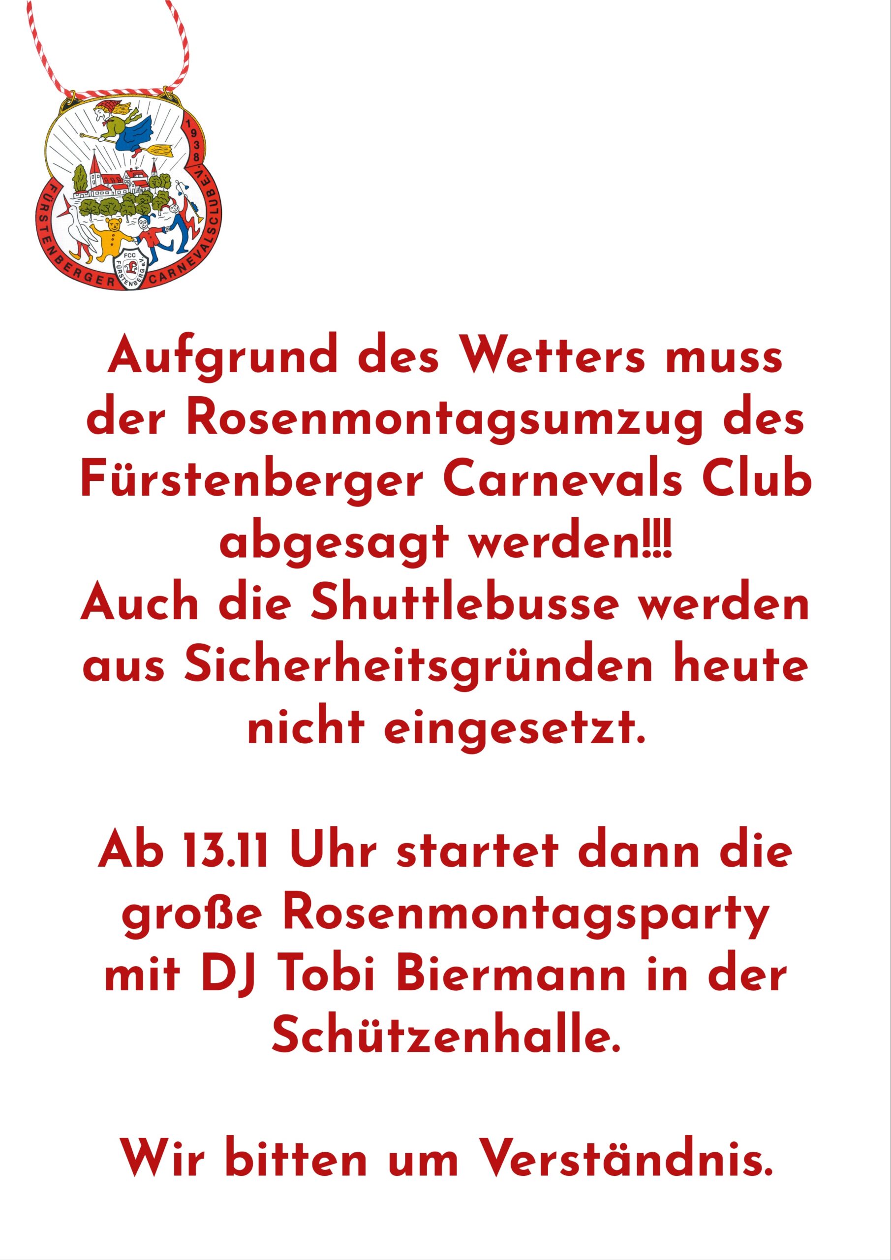 Eintritt gegen freiwillige Spende bei der vorgezogenen Rosenmontagsparty in der Schützenhalle um 13.11 Uhr.
